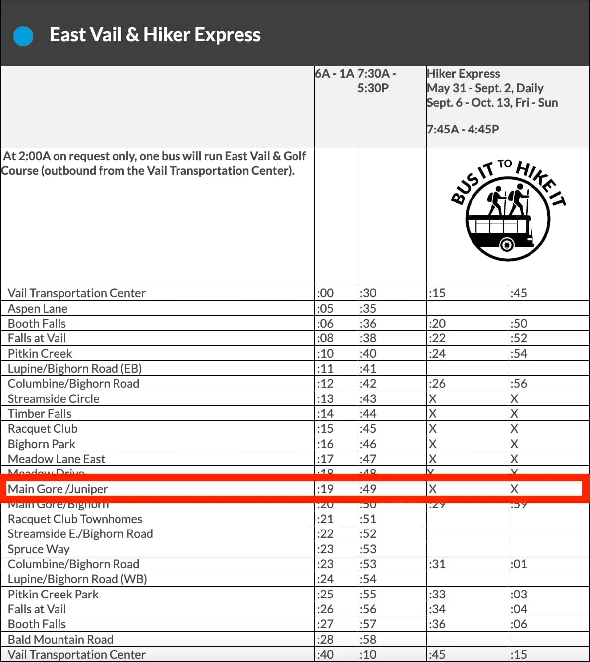 Free Town of Vail Bus Route: Conveniently located just at Main Gore Drive and Juniper Lane, to easily jump on the free bus service provides swift access to Vail Village.